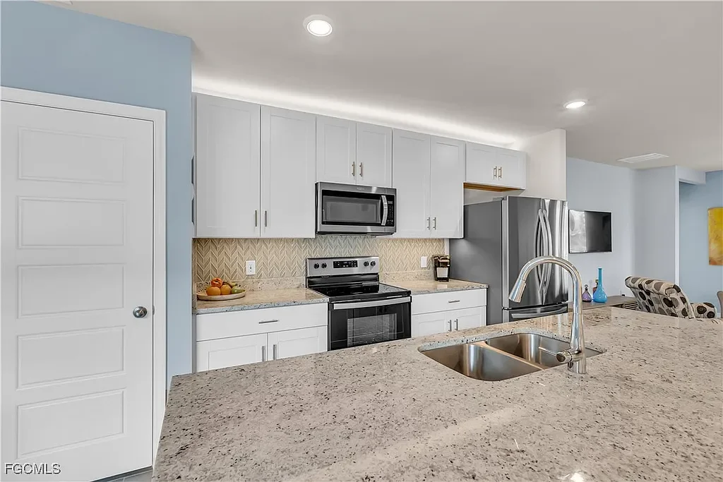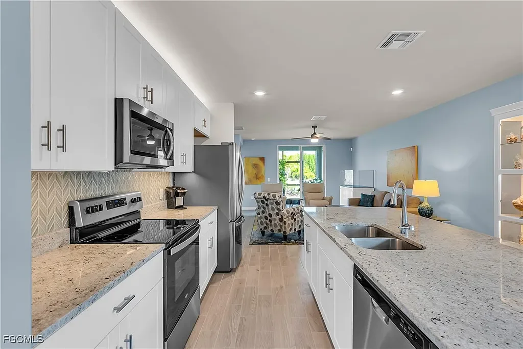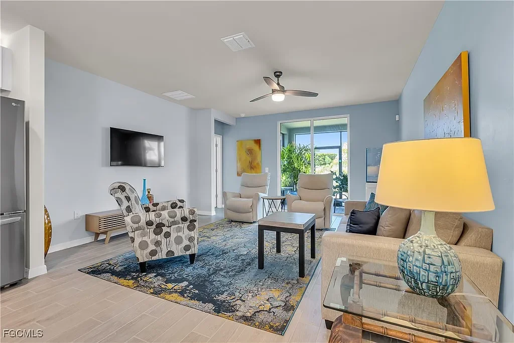 Immaculate Home beautifully landscaped Canary Model 3 bedroom/2 full bathroom. Walk into a warm, cozy kitchen with breakfast bar/ center island. Eat in kitchen with White cabinets upgraded pull out shelves and large pantry. Upgraded Ceramic Tile flooring throughout home. Bedrooms have neutral color carpet. Open floor plan allows Kitchen to flow right into living room. Master bedroom suite perfect for King size bed, Master bathroom has custom built in cabinet for linens and towels. Walk in closet, walk in shower with frameless door and double vanity sinks complete master bathroom. 2 additional bedrooms with full bathroom. Separate Laundry Room and Garage with epoxy garage floor. Shelving units in garage for new buyer. Sellers have completed many upgrades in the home. Gutters, screened lanai, washer and dryer, new refrigerator, window blinds, utility sink in garage, lighting, built in linen closet in master bathroom and exterior coach lights. Please see complete list under docs tab. Internet and garbage collection included in HOA fee.Sellers providing One Year Home Warranty from date of closing. Covers all appliances, AC system and Hot Water tank. Friendly neighbors and sidewalks on both side of the street. Wonderful family and pet friendly communtiy. Clubs for Pickleball and book lovers. Join the fun at the Pool for Wine Down Wednesdays and monthly Birthday Bash celebrating all neighbors with a birthday in that month! Cake and Cookies for all! Welcome Wagon and New Clubs forming. Schedule your showing today to see this beautiful home in a fantastic neighborhood. Contact The Schafer Team at 518-469-7978
